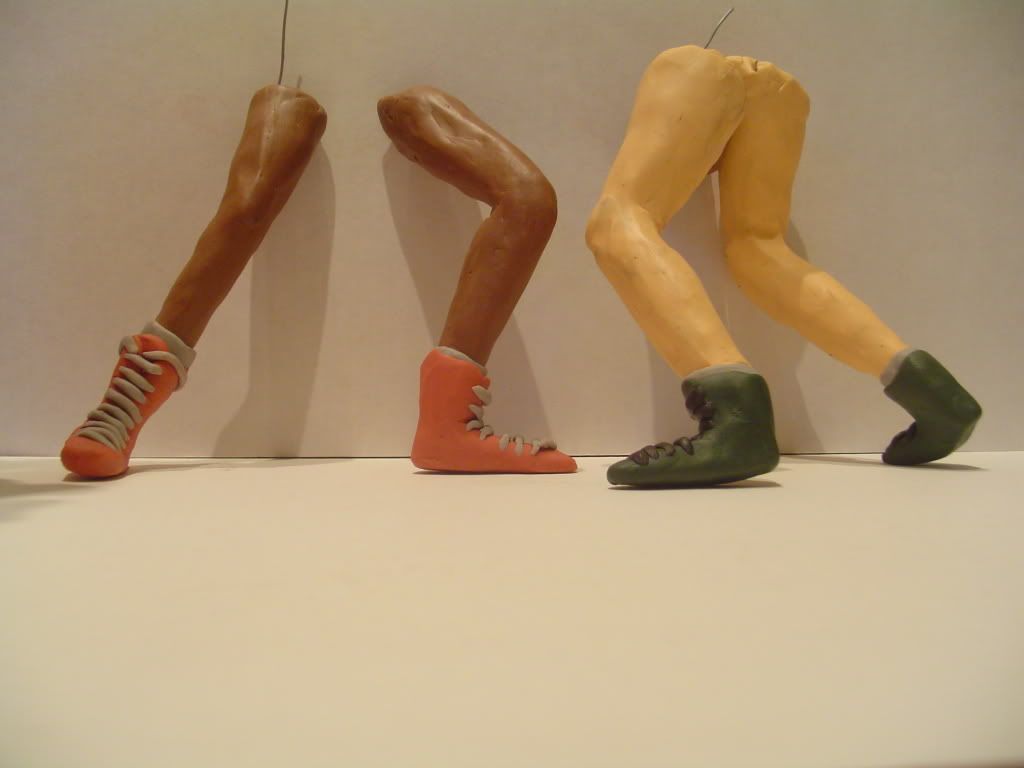 So this is what I worked on last night. Boxers' legs for my illustration for Illustration Friday. They don't look as heavy on the ground as I wanted them to, but I was worrying about my moving background and legs not staying up. It was too late and I was too excited to try and device a way to make them stay. So anyway, maybe I'll fidget around with them in Photoshop. I'm going to do multiple layers and then put them together. So this is just the top layer. And yes, It will be cropped. I don't think it looks too bad for my first try anyway.